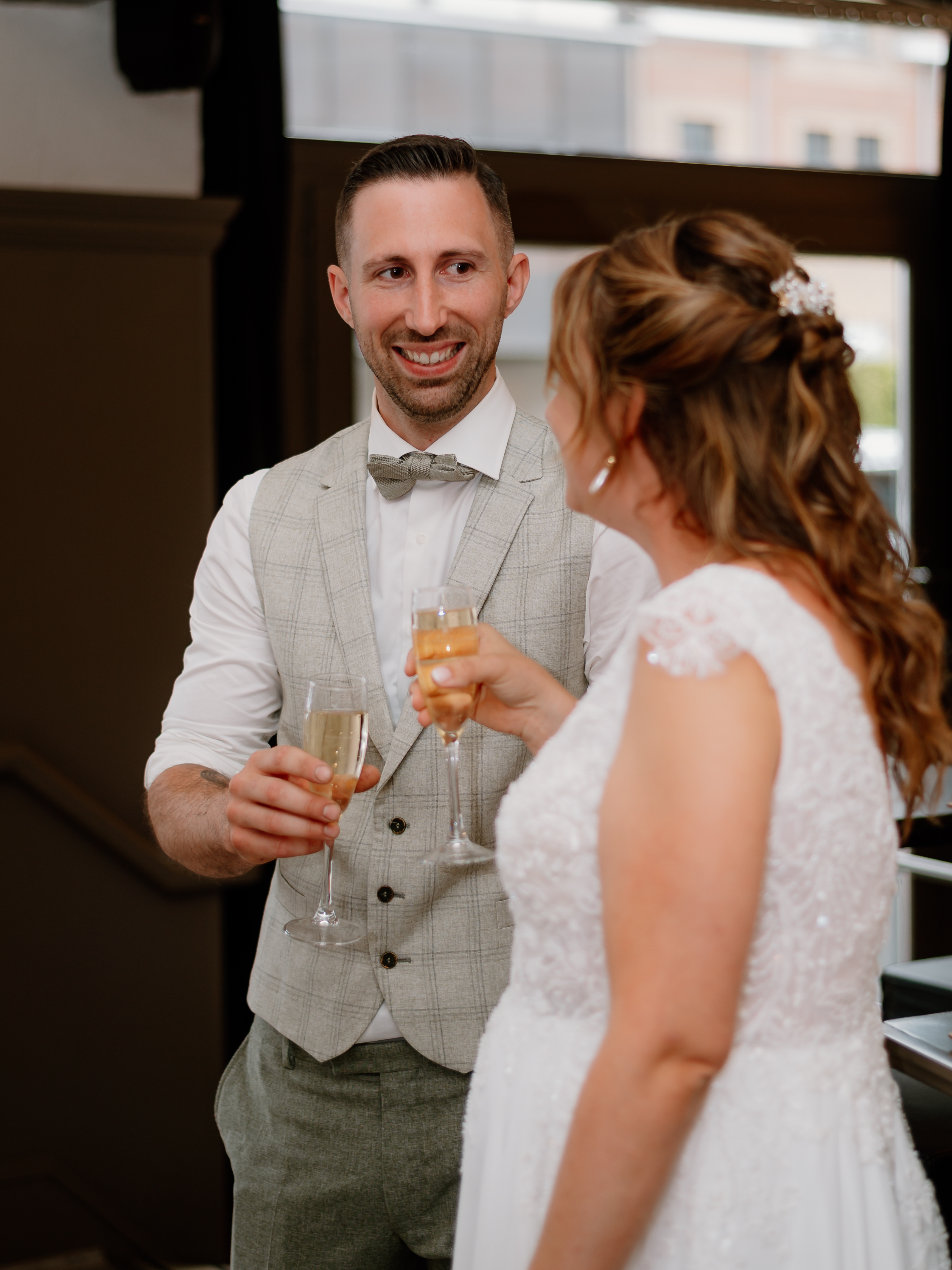 Dat jij een glimlach op je gezicht krijgt van je huwelijksfoto’s? Dat geeft mij veel voldoening. Ik leg dan ook alle details van de dag op beeld vast en schenk veel aandacht aan het menselijke aspect. Denk aan tranen in je ogen bij de first look, een niet te onderdrukken glimlach bij het jawoord of een intense knuffel van je geliefde.